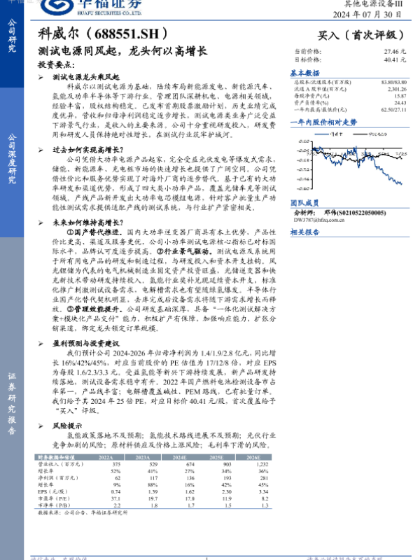 【华福证券】【20240730】科威尔(688551.SH)测试电源同风起,龙头何以高增长-28页 行业研究