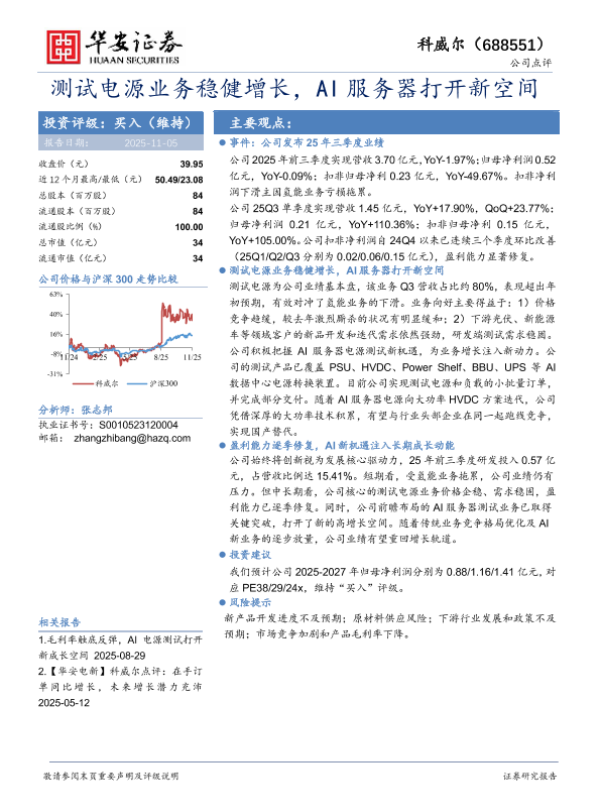 【华安证券】【202511】测试电源业务稳健增长,AI服务器打开新空间-4页 证券期货研究报告
