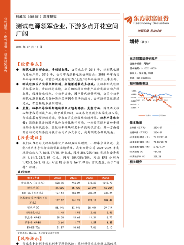 【东方财富证券】【20240712】科威尔(688551)深度研究:测试电源领军企业,下游多点开花空间广阔-21页 行业研究