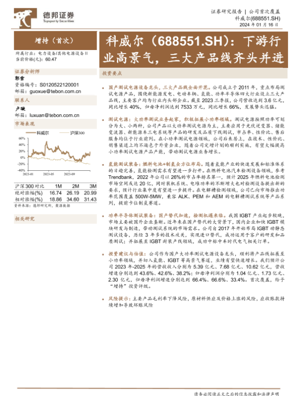 【德邦证券】【20240116】20240116-德邦证券-科威尔-688551.SH-下游行业高景气,三大产品线齐头并进-30页 行业研究