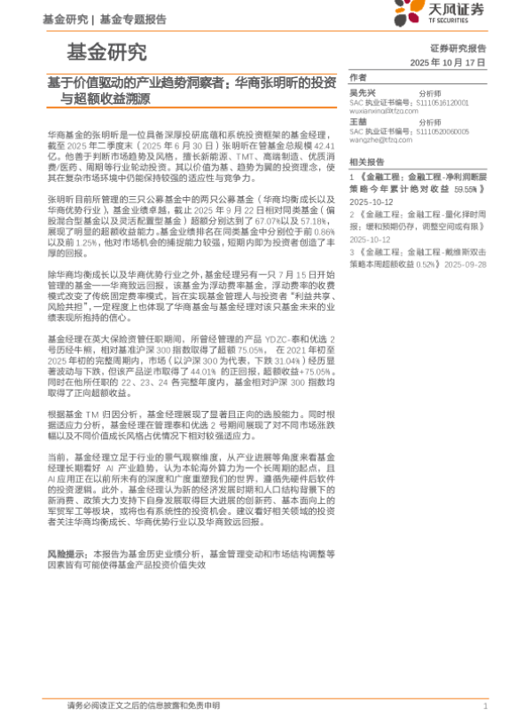 【天风证券】【202510】基于价值驱动的产业趋势洞察者:华商张明昕的投资与超额收益溯源-16页 证券期货研究报告