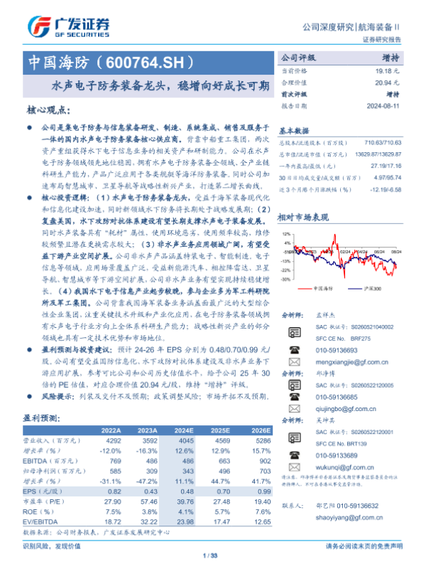 【广发证券】【20240811】中国海防(600764)水声电子防务装备龙头,稳增向好成长可期-33页 行业研究