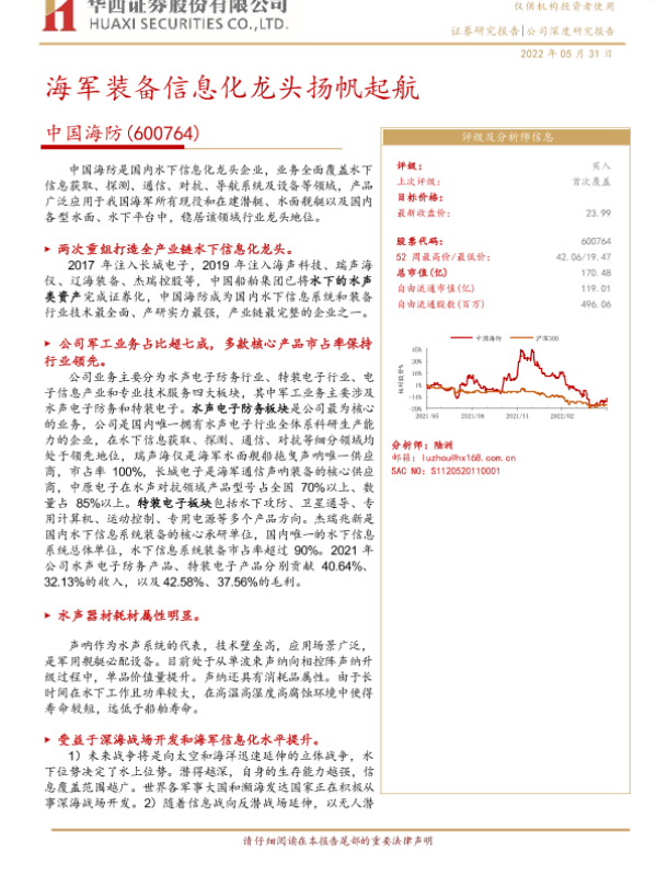 【华西证券】【20220531】海军装备信息化龙头扬帆起航-26页 证券期货研究报告