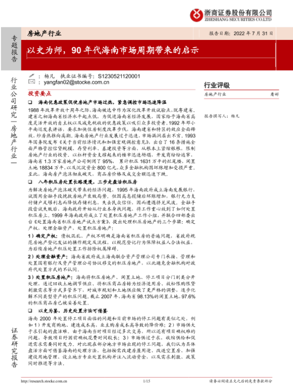 【浙商证券】【20220731】房地产行业:以史为师,90年代海南市场周期带来的启示-15页 行业研究