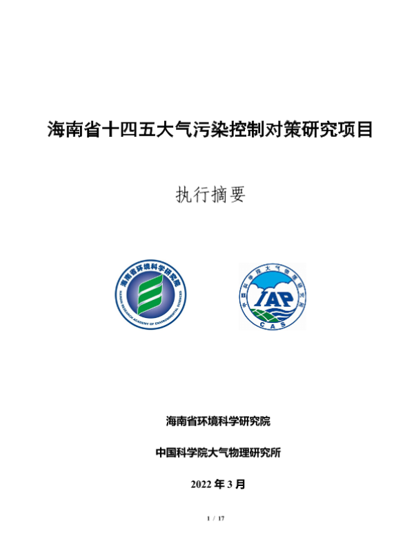 【海南省环境科学研究院】【2022】能源基金会-海南省十四五大气污染控制对策研究项目报告-17页 行业研究