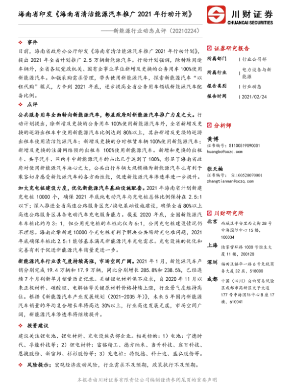 【川财证券】【20210224】海南省印发《海南省清洁能源汽车推广2021年行动计划》-2页 行业研究