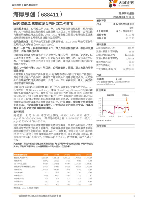 【平安证券】【20250417】海博思创(688411)储能集成“小巨人”,国内外业务进展可期-31页 公司研究