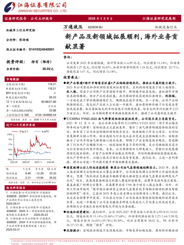 【江海证券】【202509】新产品及新领域拓展顺利 海外业务贡献显著-5页 证券期货研究报告