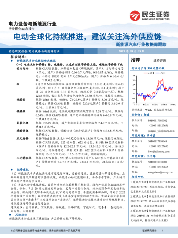 【民生证券】【20190805】20190805-民生证券-新能源汽车行业数据周跟踪:电动全球化持续推进,建议关注海外供应链-12页 行业研究