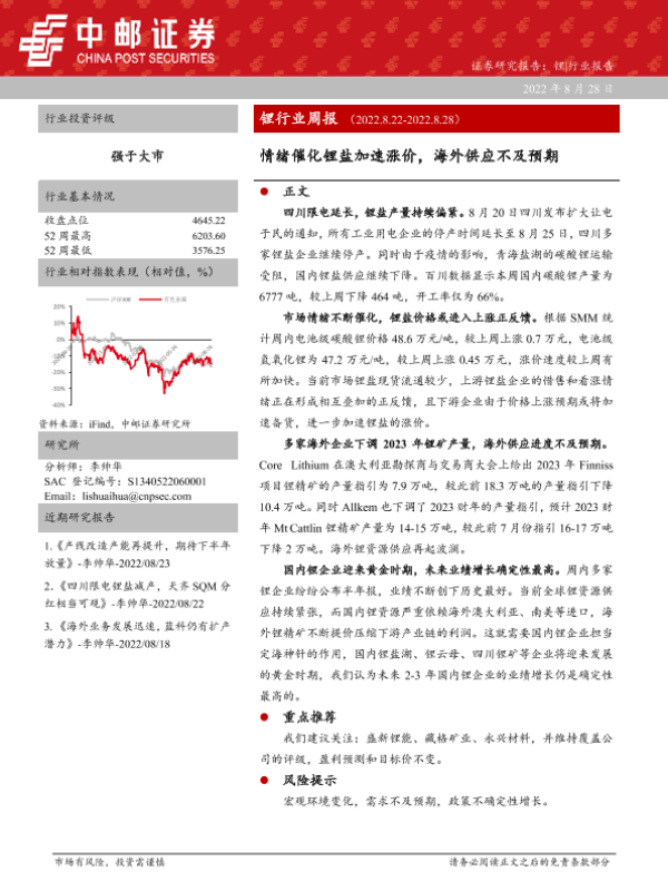 【中邮证券】【20220828】20220828-中邮证券-锂行业周报:情绪催化锂盐加速涨价,海外供应不及预期-13页 行业研究