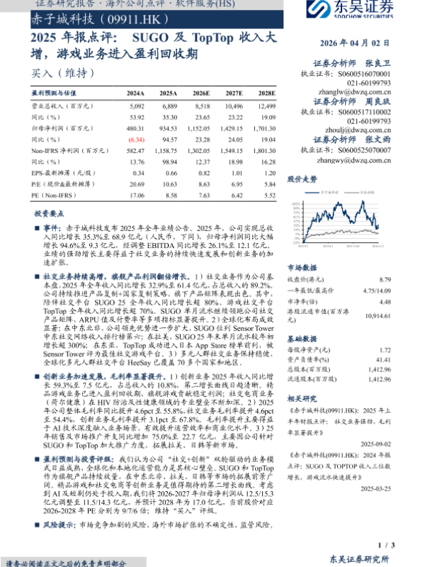 【东吴证券】【202604】2025年报点评:SUGO及TopTop收入大增,游戏业务进入盈利回收期-3页 证券期货研究报告