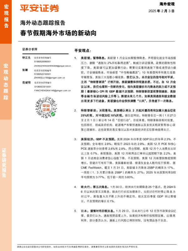 【平安证券】【20250203】海外动态跟踪报告:春节假期海外市场的新动向-12页 宏观策略