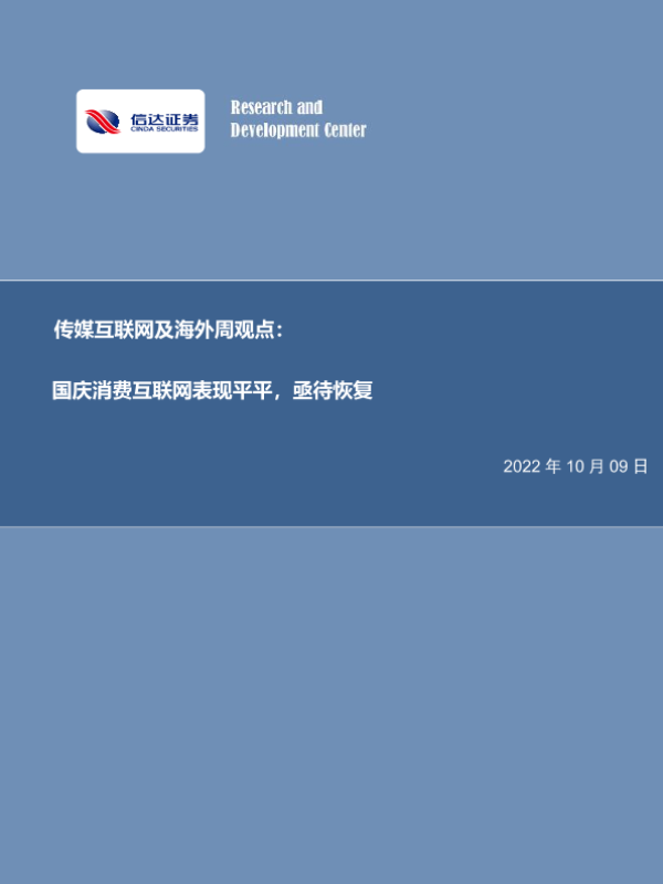 【信达证券】【20221009】传媒互联网及海外周观点:国庆消费互联网表现平平,亟待恢复-18页 行业研究