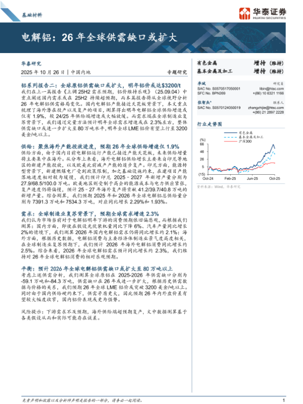 【华泰证券】【202510】基础材料行业电解铝:26年全球供需缺口或扩大-22页 证券期货研究报告