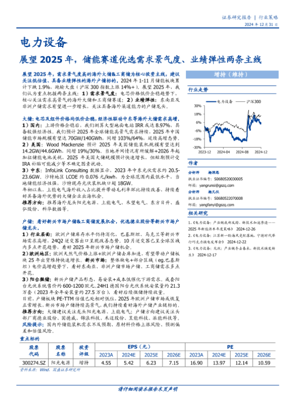 【国盛证券】【20241231】电力设备行业策略:展望2025年,储能赛道优选需求景气度、业绩弹性两条主线-19页 行业研究