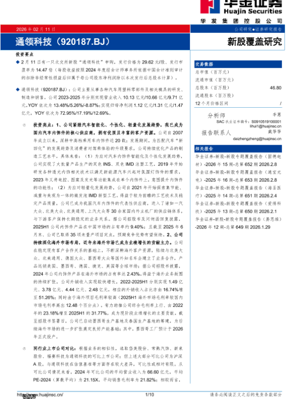【华金证券】【202602】新股覆盖研究:通领科技-10页 证券期货研究报告
