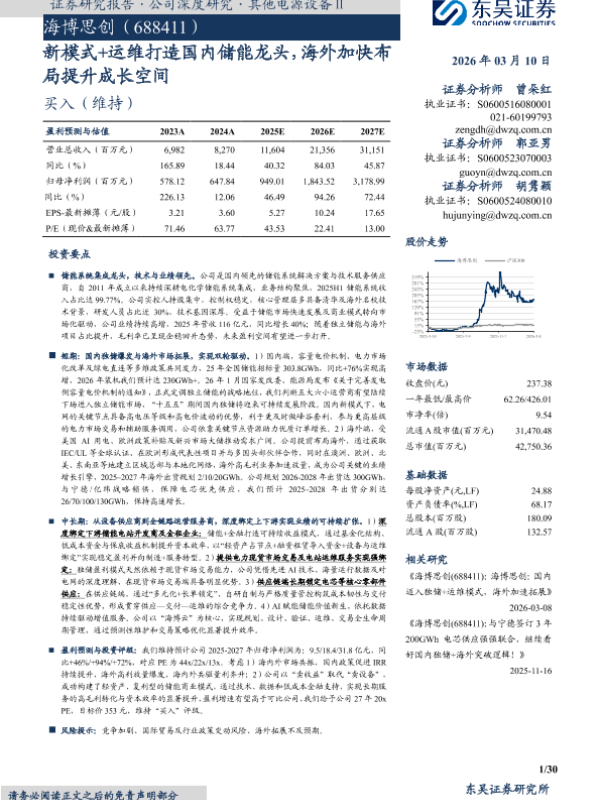 【东吴证券】【202603】新模式+运维打造国内储能龙头,海外加快布局提升成长空间-30页 证券期货研究报告