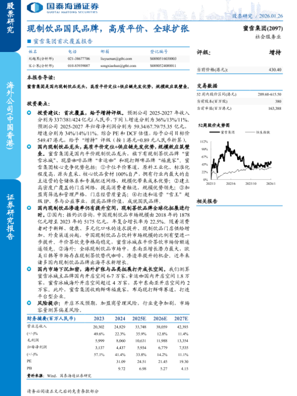 【国泰海通证券】【202601】现制饮品国民品牌,高质平价、全球扩张-49页 证券期货研究报告