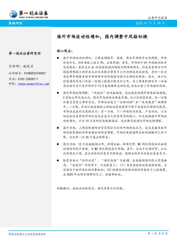 【第一创业证券】【202511】海外市场波动性增加,国内调整中风格切换-8页 证券期货研究报告