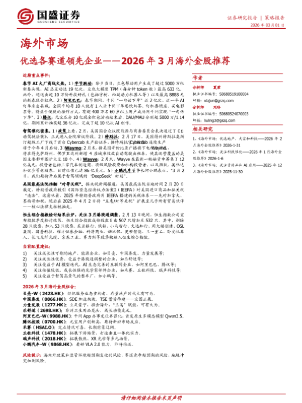 【国盛证券】【202603】优选各赛道领先企业——2026年3月海外金股推荐-18页 证券期货研究报告