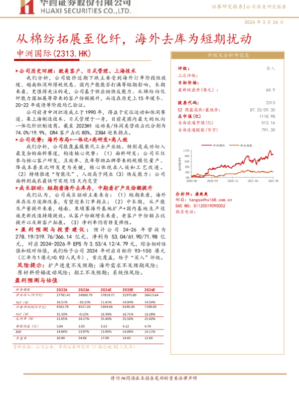 【华西证券】【20240326】申洲国际(2313.HK)从棉纺拓展至化纤,海外去库为短期扰动-38页 行业研究