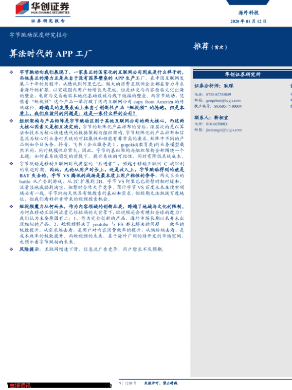 【华创证券】【20200112】字节跳动深度研究报告:算法时代的APP工厂-30页 行业研究