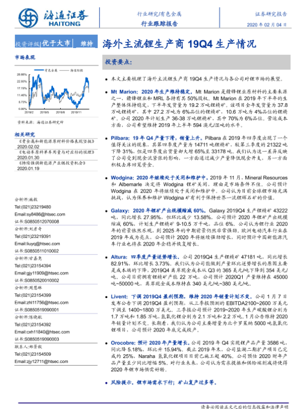 【海通证券】【20200204】20200204-海通证券-有色金属行业跟踪报告:海外主流锂生产商19Q4生产情况-3页 行业研究