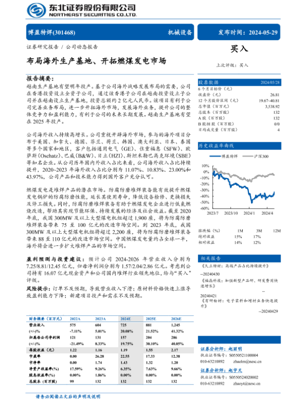 【东北证券】【20240529】博盈特焊(301468)布局海外生产基地、开拓燃煤发电市场-12页 行业研究