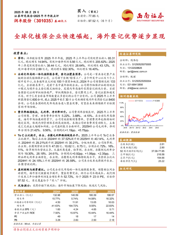 【西南证券】【202508】润丰股份2025年半年报点评:全球化植保企业快速崛起,海外登记优势逐步显现-13页 证券期货研究报告