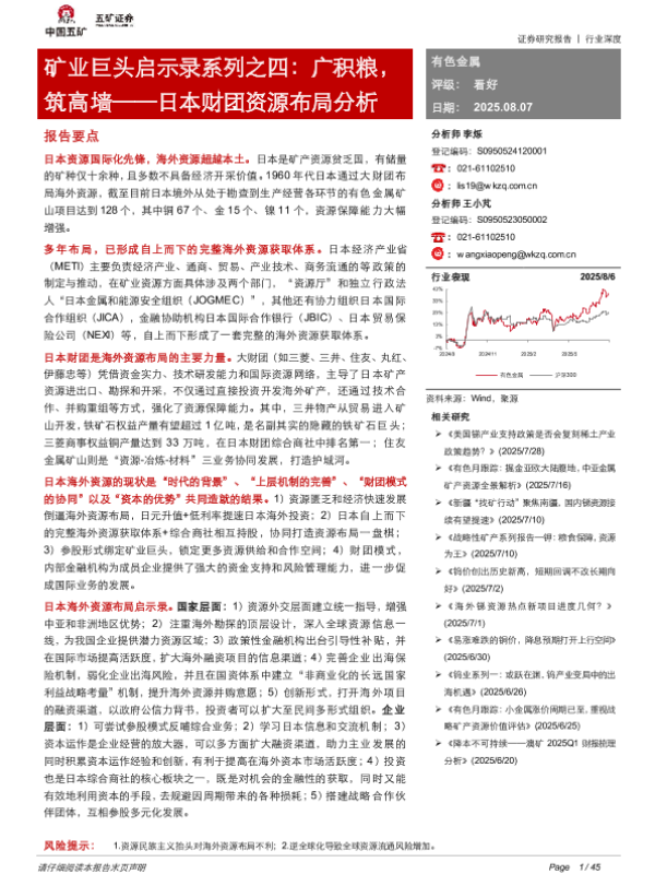 【五矿证券】【20250807】日本财团资源布局分析-矿业巨头启示录系列之四:广积粮,筑高墙-45页 证券期货研究报告