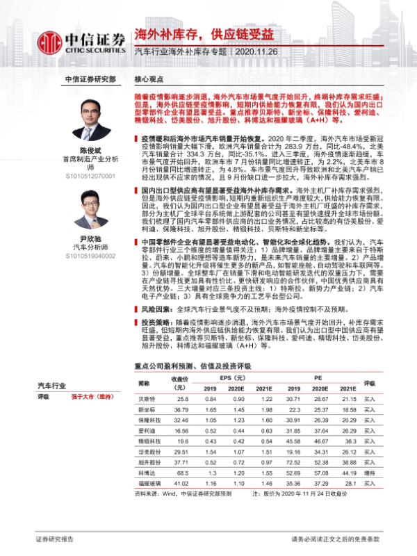 【中信证券】【20201126】汽车行业海外补库存专题:海外补库存,供应链受益-7页 行业研究