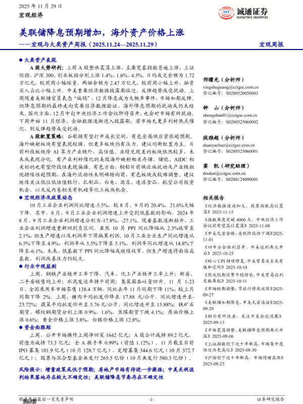 【诚通证券研究所】【202511】美联储降息预期增加,海外资产价格上涨——宏观与大类资产周报(2025.11.24—2025.11.29)-21页 证券期货研究报告