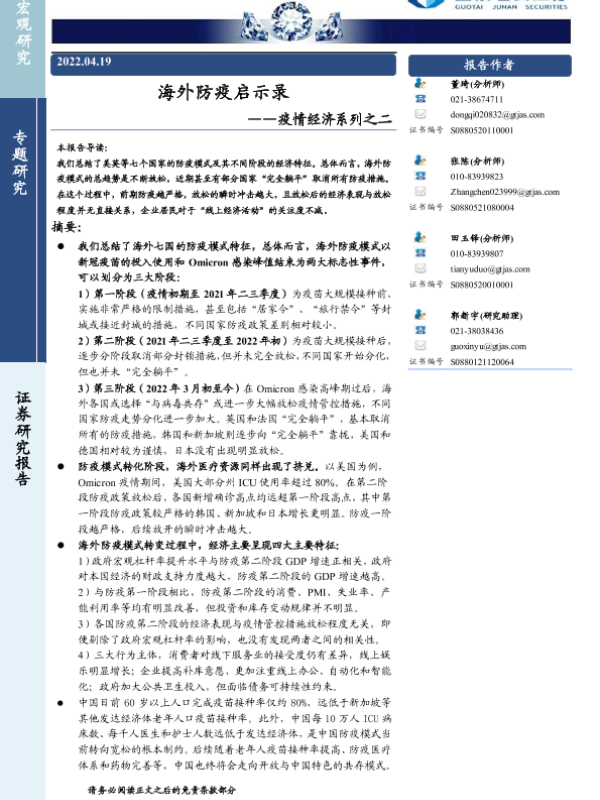 【国泰君安证券】【20220419】疫情经济系列之二:海外防疫启示录-28页 行业研究