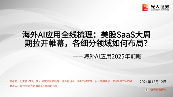 【光大证券】【20241212】海外TMT行业AI应用2025年前瞻:海外AI应用全线梳理,美股SaaS大周期拉开帷幕,各细分领域如何布局?-67页 行业研究