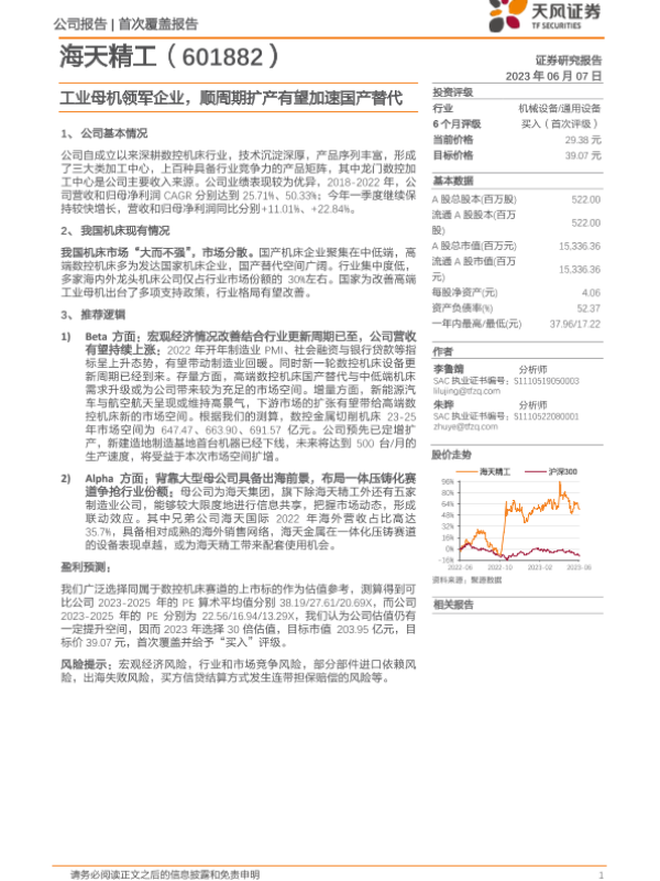 【天风证券】【20230607】海天精工-601882.SH-工业母机领军企业,顺周期扩产有望加速国产替代-28页 行业研究