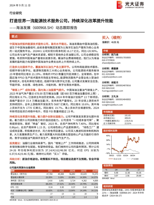 【光大证券】【20240911】海油发展(600968)动态跟踪报告:打造世界一流能源技术服务公司,持续深化改革提升效能-24页 行业研究