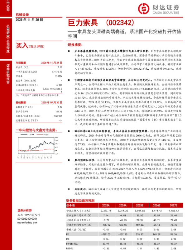 【财达证券】【202511】巨力索具——索具龙头深耕高端赛道,系泊国产化突破打开估值空间-27页 证券期货研究报告