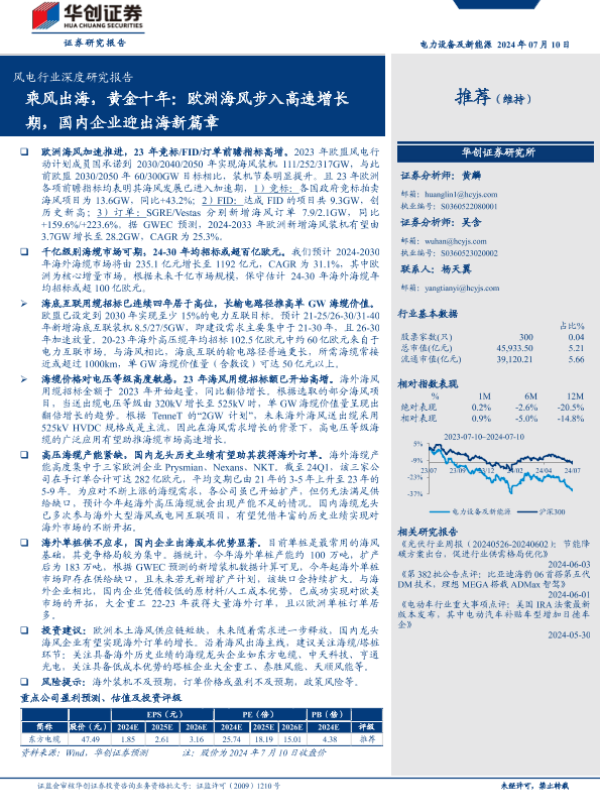 【华创证券】【20240710】风电行业深度研究报告:乘风出海,黄金十年,欧洲海风步入高速增长期,国内企业迎出海新篇章-24页 行业研究