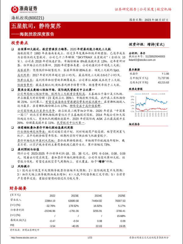 【浙商证券】【20230807】海航控股深度报告(600221):五星航司,静待复苏-23页 行业研究