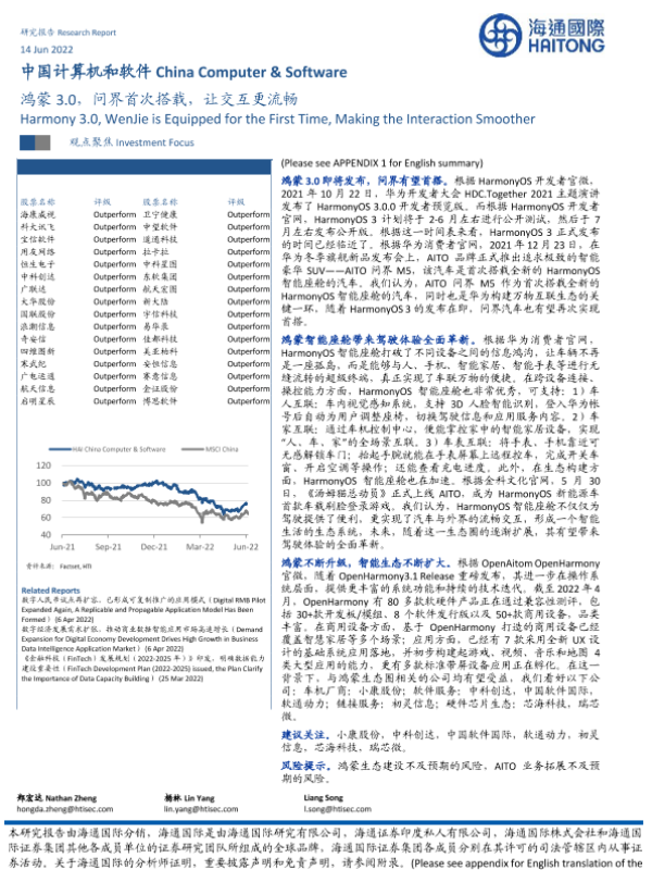 【海通国际】【20220614】鸿蒙3.0,问界首次搭载,让交互更流畅-15页 行业研究