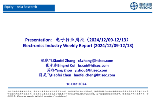 【海通国际】【20241216】电子行业周报(2024/12/09-12/13)-27页 行业研究