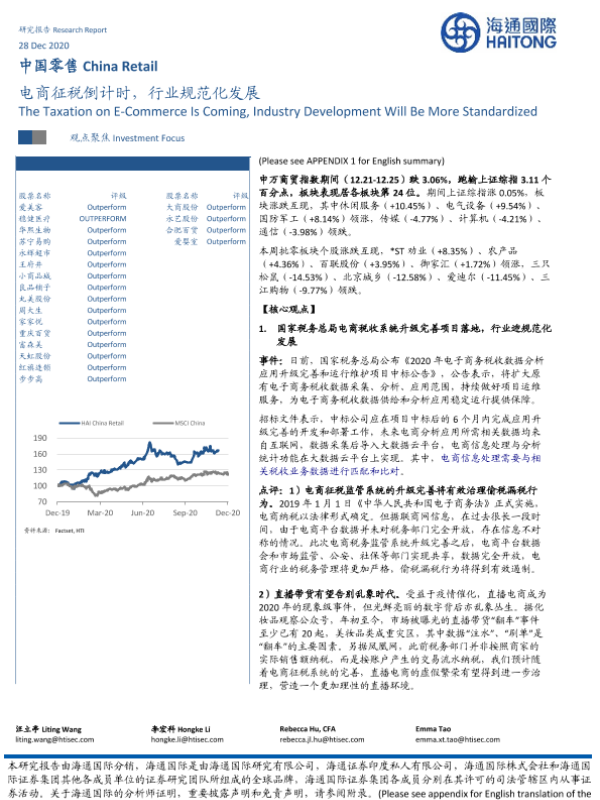 【海通国际】【20201228】中国零售:电商征税倒计时,行业规范化发展-14页 行业研究