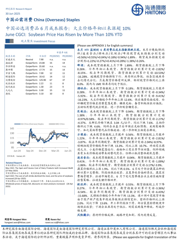 【海通国际】【20250630】中国必选消费品6月成本报告-16页 证券期货研究报告