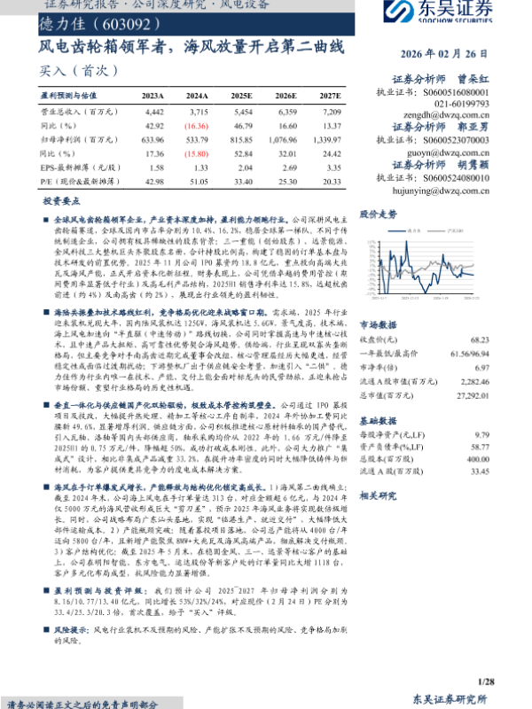 【东吴证券】【202602】风电齿轮箱领军者,海风放量开启第二曲线-28页 证券期货研究报告