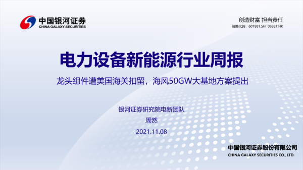 【银河证券】【20211108】电力设备新能源行业周报:龙头组件遭美国海关扣留,海风50GW大基地方案提出-48页 行业研究