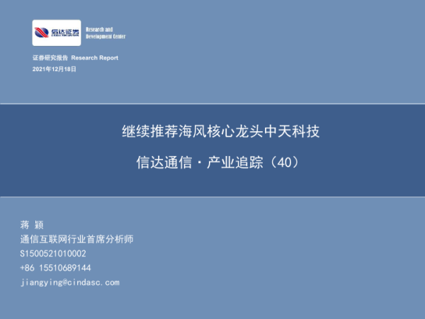 【信达证券】【20211218】通信行业·产业追踪(40):继续推荐海风核心龙头中天科技-39页 行业研究