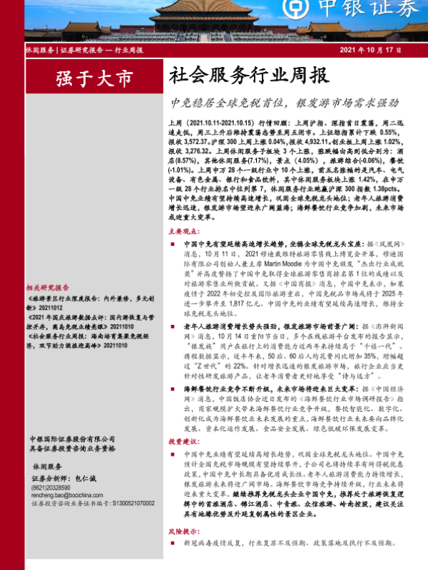 【中银证券】【20211017】社会服务行业周报:中免稳居全球免税首位,银发游市场需求强劲-22页 行业研究