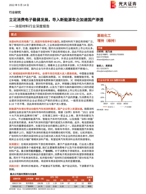 【光大证券】【20220914】20220914-光大证券-涂层材料行业深度报告:立足消费电子稳健发展,导入新能源车企加速国产渗透-30页 行业研究