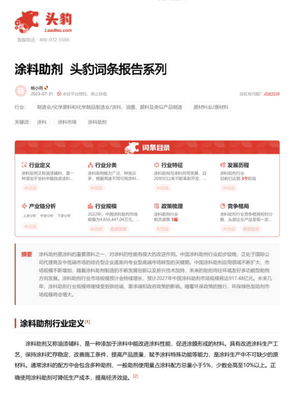 【头豹研究院】【20230731】涂料助剂 头豹词条报告系列-16页 行业研究