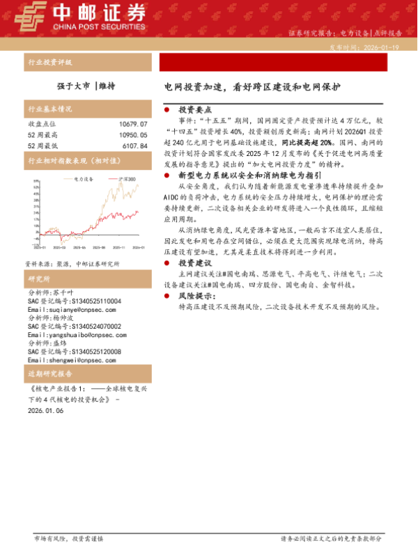 【中邮证券】【202601】电力设备:电网投资加速,看好跨区建设和电网保护-3页 证券期货研究报告